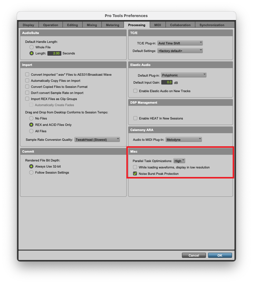 - On Pro Tools, go to preferences and then the processing tab.